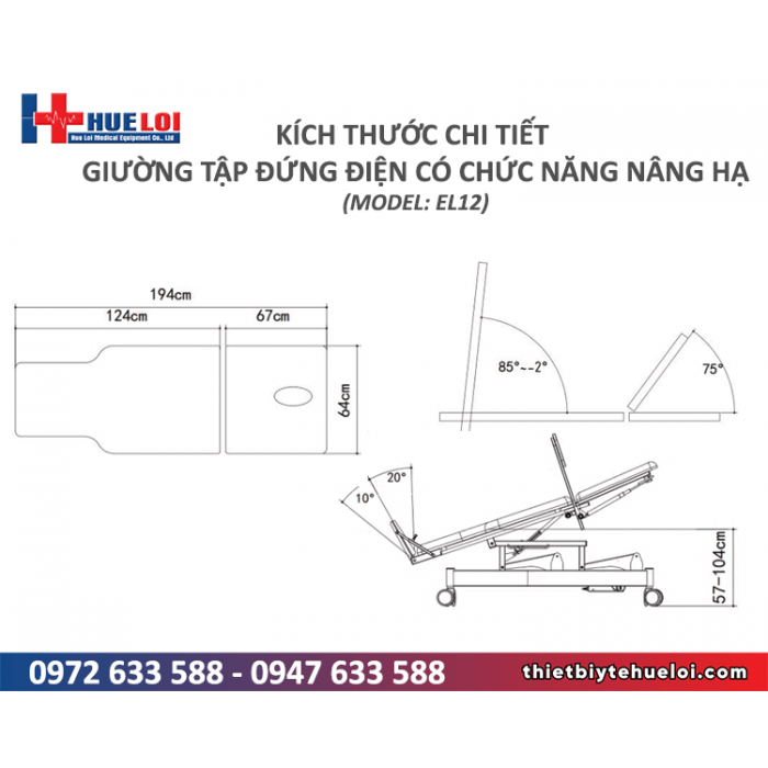 1. Giường tập đứng điện có chức năng nâng hạ (Model: EL12)