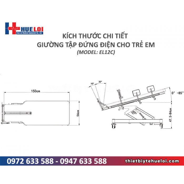 2. Giường tập đứng điện chuyên dụng cho trẻ em (Model: EL12C)