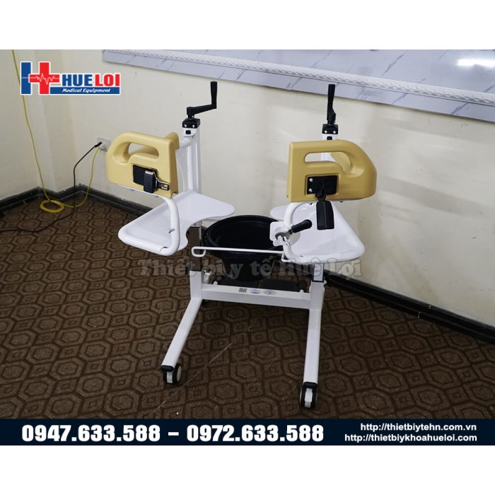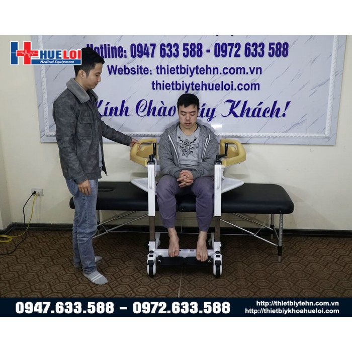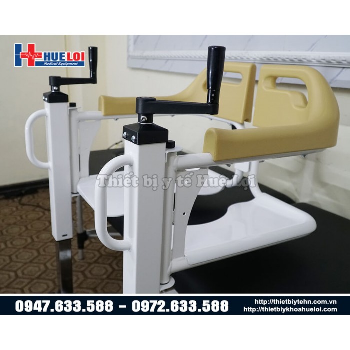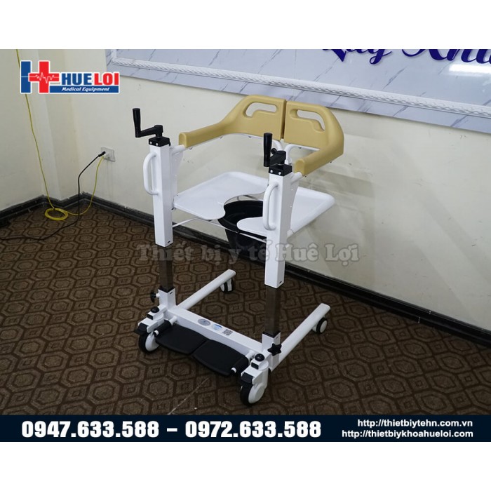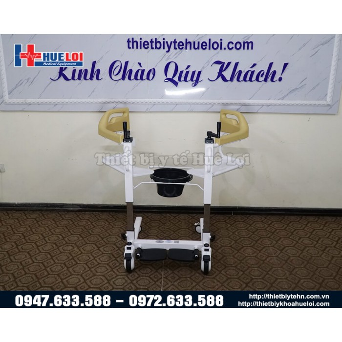 Xe lăn đa năng có thể tách rời thành 2 mảnh, sử dụng tay quay để nâng hạ bệnh nhân, từ đó giúp bệnh nhân dễ dàng ngồi lên mà không cần bê/vác, chất liệu thép cực dày, nhựa ABS chống nước, có bô vệ sinh và đệm lót. Sản phẩm thích hợp cho những bệnh nhân gặp khó khăn trong việc đi lại, giúp người nhà giảm bớt gánh nặng trong việc chăm sóc.