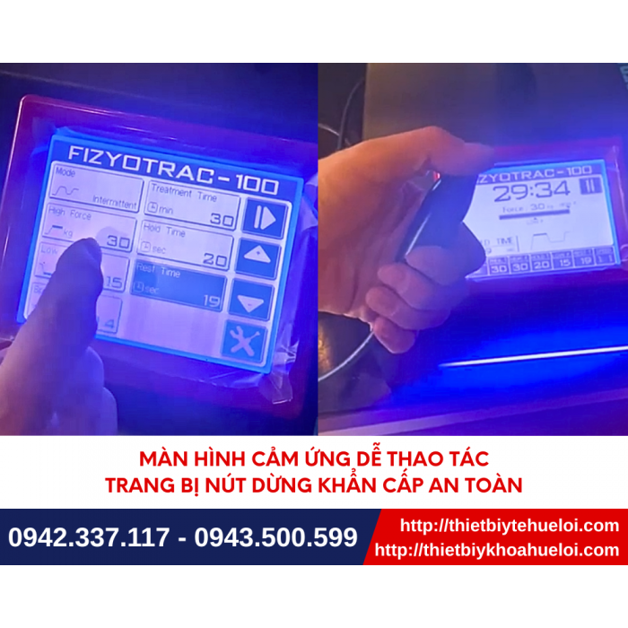 Máy kéo giãn cột sống FIZYOTRAC-100 – giải pháp hiện đại và toàn diện trong lĩnh vực trị liệu kéo giãn cột sống. Thiết bị mang đến hiệu quả điều trị vượt trội nhờ khả năng kiểm soát lực tốt, cho phép cài đặt chính xác giới hạn lực đỉnh và duy trì lực nền ổn định, đảm bảo tác động êm ái và hiệu quả. Điểm đắt giá của máy là khả năng tùy chỉnh tốc độ nâng lực kéo (với 8 mức độ) giúp loại bỏ đáng kể phản xạ co cơ, kết hợp với đa dạng lựa chọn chế độ, thời gian trị liệu giúp bác sĩ cá nhân hóa mọi phác đồ. Thiết kế với màn hình cảm ứng thông minh, FIZYOTRAC-100 mang đến trải nghiệm vận hành đơn giản, đồng thời trang bị đa tính năng đảm bảo an toàn cho bệnh nhân trong suốt cuộc trị liệu.