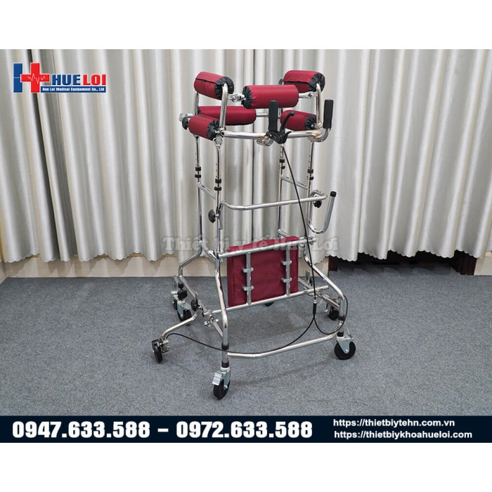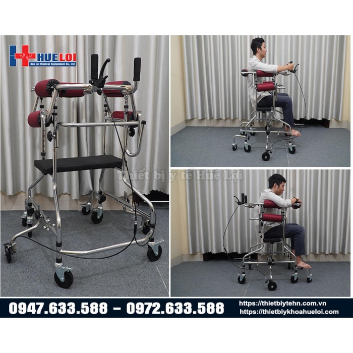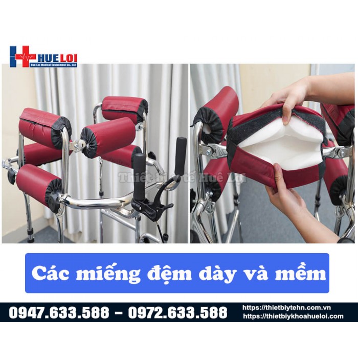 - Khung giúp người bệnh đứng thẳng bằng hệ thống đai đỡ, không cần người nhà đỡ