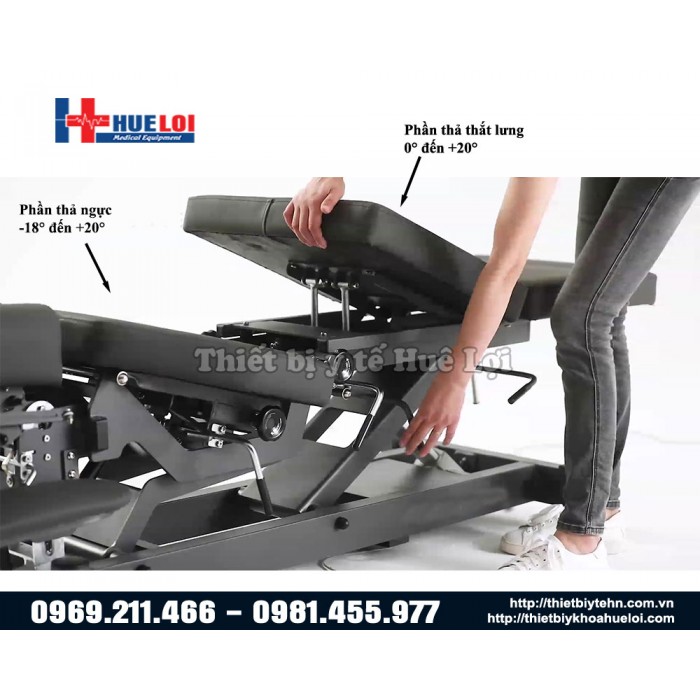 - Thiết kế tách rời phần bụng và phần ngực có thể nâng lên hoặc hạ xuống giúp cho phương pháp điều trị đa dạng hơn