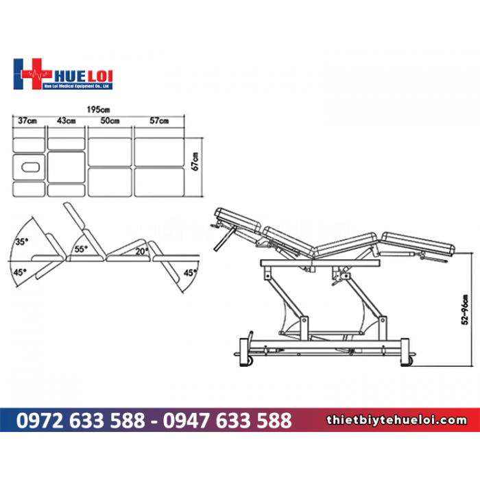 EL10 cho phép điều chỉnh độc lập nhiều phần: đầu – lưng – ghế – chân, hỗ trợ tối đa cho các kỹ thuật huyệt đạo, nắn chỉnh, kéo giãn, vận động trị liệu.