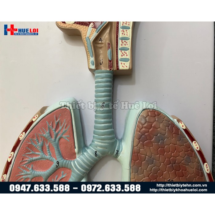 Mô hình hệ hô hấp và túi phế nang phóng đại làm từ chất liệu PVC cao cấp, màu sơn bền bỉ theo thời gian, thích hợp sử dụng trong việc giảng dạy và học tập môn giải phẫu tại các trường đại học cao đẳng y.