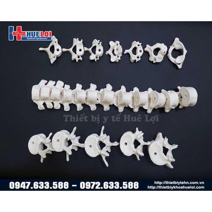 - Cột sống: gồm 7 đốt sống cổ, 12 đốt sống ngực, 5 đốt sống thắt lưng, 1 xương cùng, 1 xương cụt và 23 sụn khớp. Mỗi đốt sống dều được đánh số để dễ dàng xếp đặt và học tập