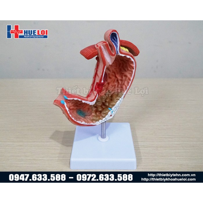 Mô hình các bệnh lý dạ dày mô tả hình ảnh các bệnh lý hay gặp ở dạ dày như viêm loét dạ dày, ung thư dạ dày...thích hợp cho việc giảng dạy và học tập môn giải phẩu và bệnh học đường tiêu hóa tại các trường đại học, cao đẳng y.