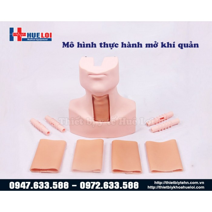 Mô hình thực hành mở khí quản cung cấp tư liệu cho quá trình thực hành mở khí quản một cách cực kỳ trực quan gần giống với thực tế, đi kèm là những khí quản thay thế với những loại vết rạch khác nhau: Vết rạch thẳng đứng, rạch ngang, rạch hình chữ thập, rạch hình chữ U, rạch hình chữ U đảo ngược.