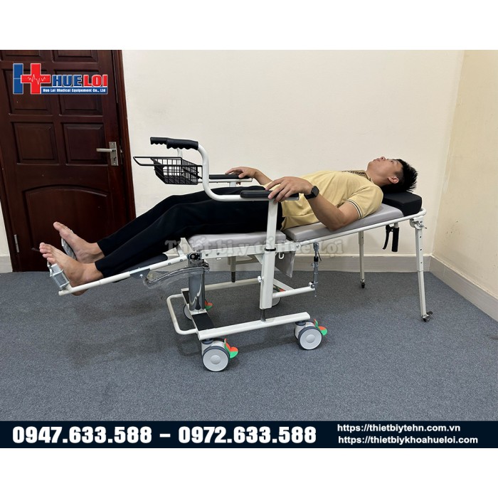- Xe lăn ngả nằm đa chức năng có thể tháo rời 2 bên,phần ghế ngồi ngả phẳng xuống 180° giống như chiếc giường từ đó giúp bệnh nhân sẽ dàng ngồi lên mà không cần bế/vác, chất liệu thép cực dày, nhựa ABS chống nước, có bô vệ sinh và đệm lót. Sản phẩm thích hợp cho những bệnh nhân gặp khó khăn trong việc đi lại, giúp người nhà giảm bớt gánh nặng trong việc chăm sóc.